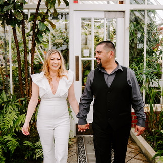I love starting out my sessions with just plain old walking. A lot of times you may be really nervous or stressed and so it’s always good to re-center with some walking. This always really helps with movement in your engagement photos. I usually have a couple walk away or towards me casually bumping hips or running into each other and doing a mix of looking at each other, the camera, or even past the camera.